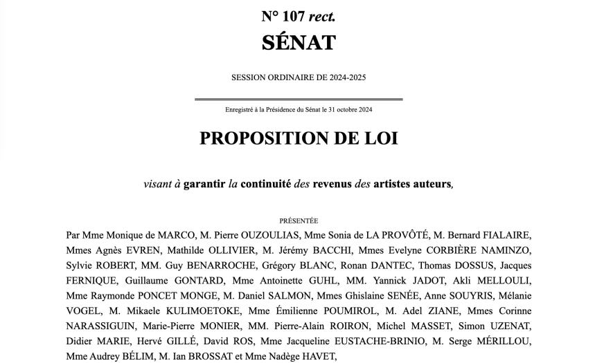 Proposition de loi n°107 visant à instaurer un dispositif de continuité de revenus pour les artistes-auteurs